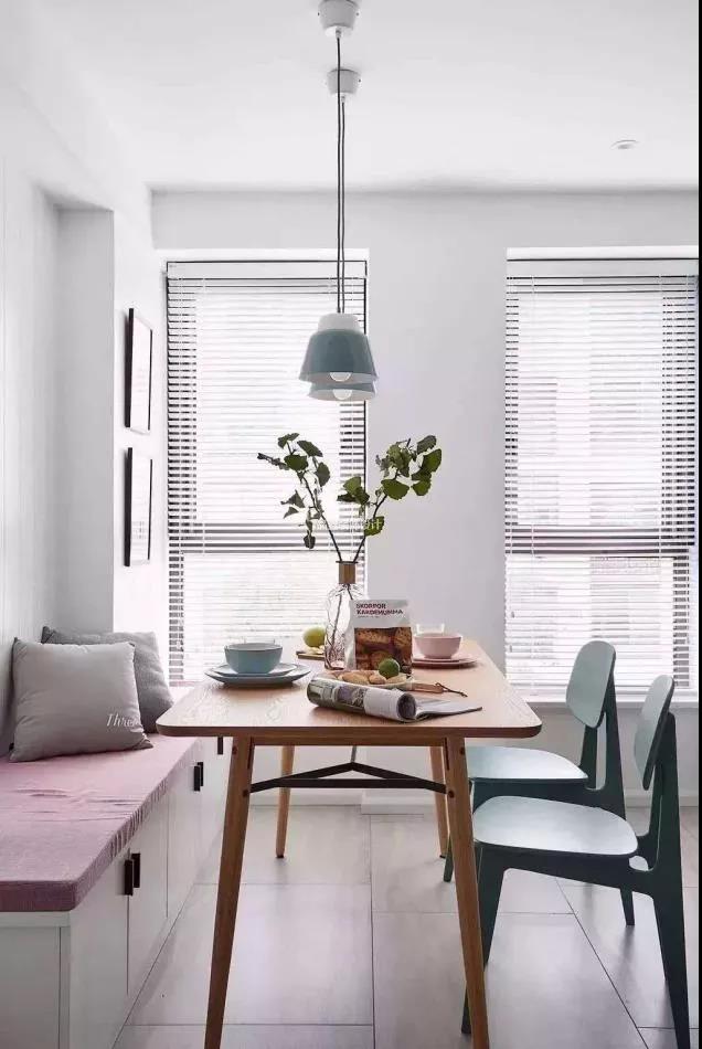 桌子上面搭配一盞吊燈,浪漫的氛圍油然而生。