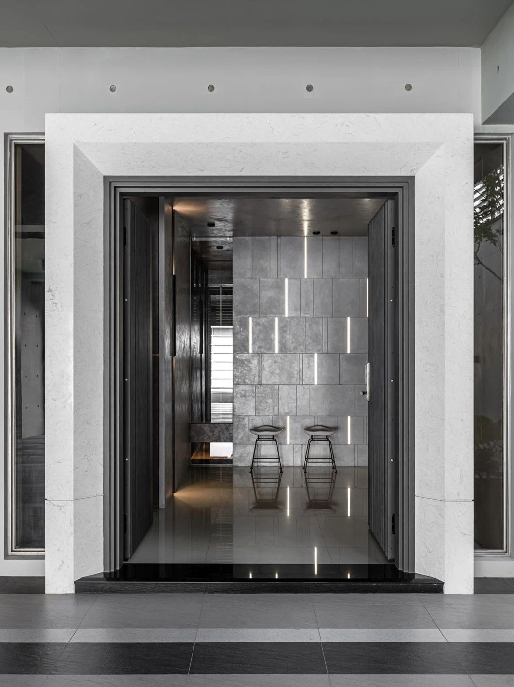 玄關區(qū)域的燈光設計注意兩點。