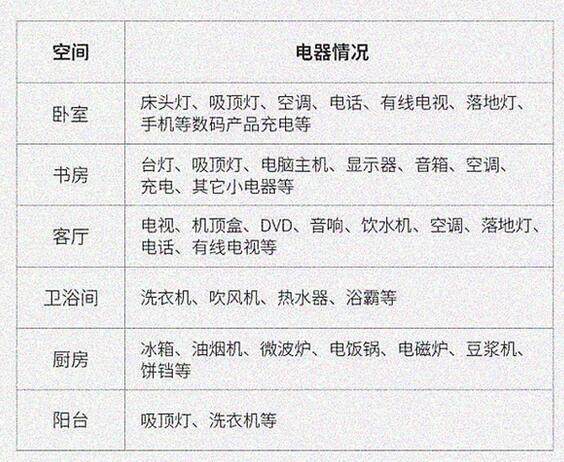 3、主要使用的電器